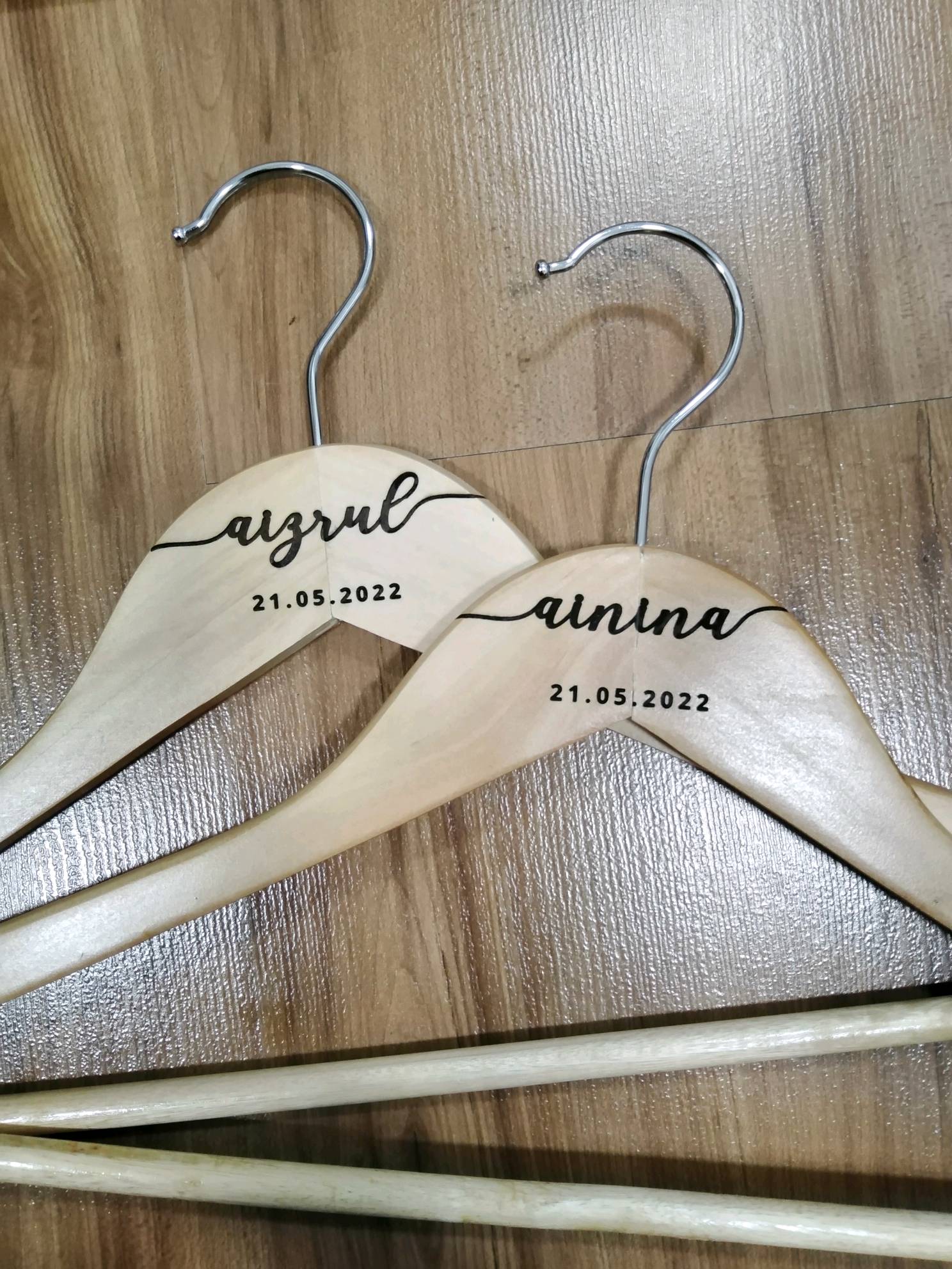 Wedding Hanger Customized Name Laser Engraved Ukiran Hantaran Penyangkut Baju Kayu Shopee Malaysia